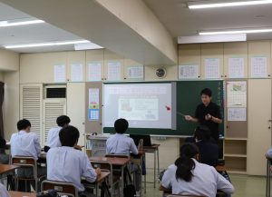 3年生の商業選択科目であるビジネス総合では、身近なものを題材に授業をおこなっています。
